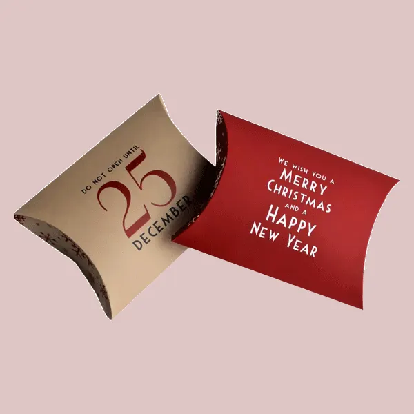 Our christmas pillow boxes are the perfect blend of festive charms and functional design, making your holiday packaging both delightful and hassle free and are created using high quality, eco friendly materials and feature cheerful holiday design and unique pillow shapes that adds a special touch to any gift and are used for packaging small gifts, treat or party favors. Our boxes are easy to assemble, lightweight and customizable to match your holiday theme or brand and are trusted by different businesses and individuals. Other benefits of these boxes are